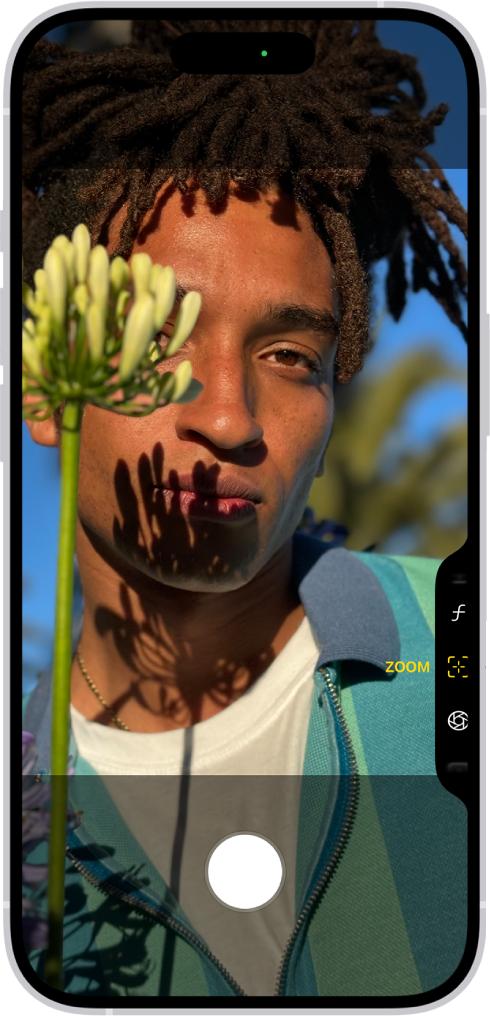 O controlo da câmara (em modelos compatíveis) permite-te abrir rapidamente a câmara do iPhone e aceder a definições comuns da câmara.