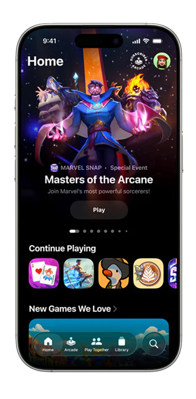 O novo Apple Games reúne todos os teus jogos — da App Store e do Apple Arcade — e mostra eventos em tempo real. Há ainda gravação de voz com qualidade de estúdio nos AirPods, comandos de câmara à distância e melhorias nas Contas de Criança.
