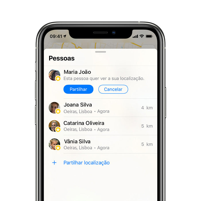 Podes partilhar a tua localização com os teus amigos e/ou familiares, e eles contigo.