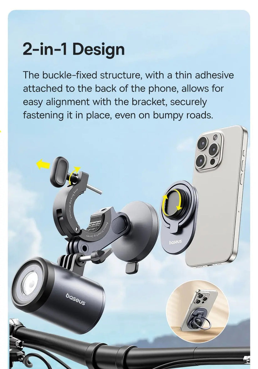 Suporte magnético para telefone 2 em 1 com lanterna integrada é um acessório multifuncional que combina um suporte para telefone e uma lanterna para bicicletas. Este produto foi projetado para proporcionar máxima comodidade e garantir segurança em cada viagem.