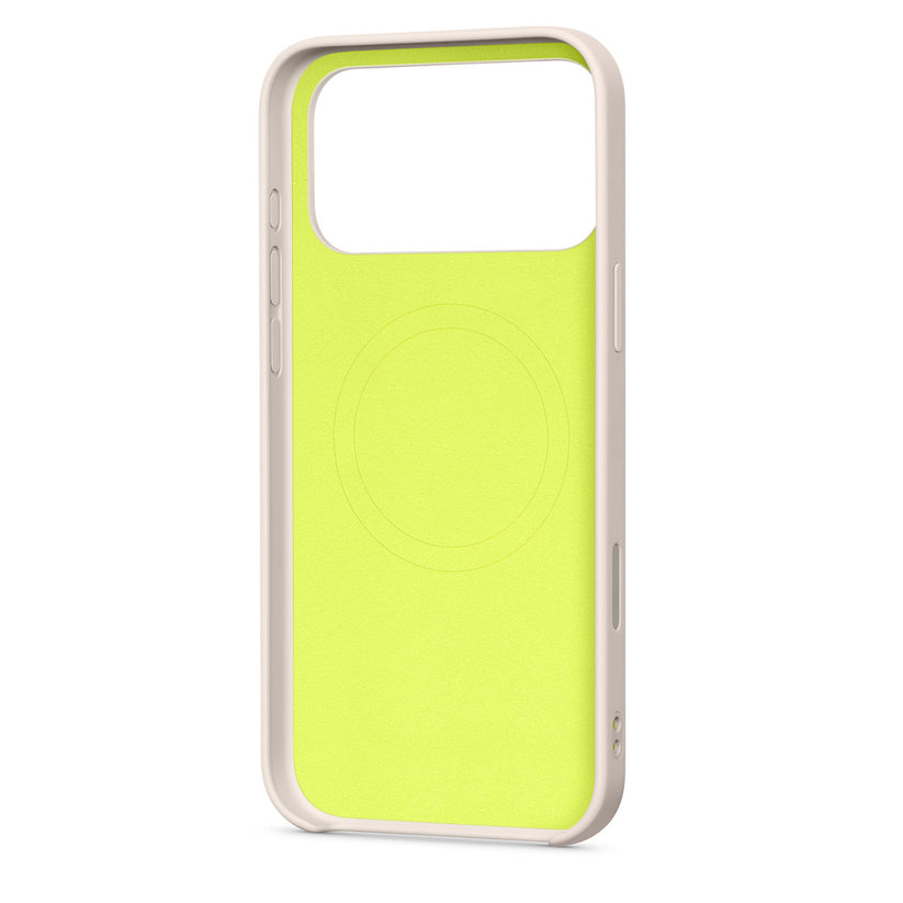 A Capa Kickstand da Beats é compatível com MagSafe e possui ímanes integrados que se alinham perfeitamente com o iPhone 17 Pro Max, para uma colocação fácil e carregamento wireless eficiente. A parte inferior da capa é aberta para facilitar a utilização do ecrã tátil.