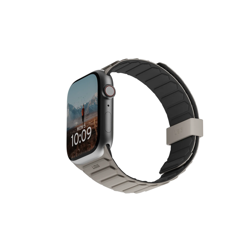 Melhora a experiência com o smartwatch com a pulseira magnética reversível Pathfinder. Equipada com ímanes potentes ocultos na correia, permite ajustar e prender facilmente ao pulso com um encaixe preciso. O fecho final e a argola de segurança garantem uma fixação fiável ao smartwatch. A combinação do silicone de toque suave com o sistema magnético oferece conforto excecional durante todo o dia, evitando os pontos de pressão das fivelas tradicionais. O design reversível, com duas cores distintas, complementa qualquer estilo.